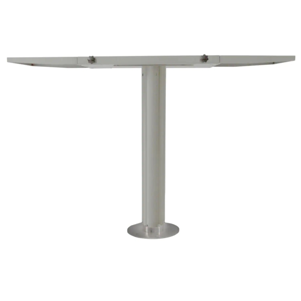 - Pedestal base designed to fit standard marine chair deck plate while side shelves provide valuable workspace