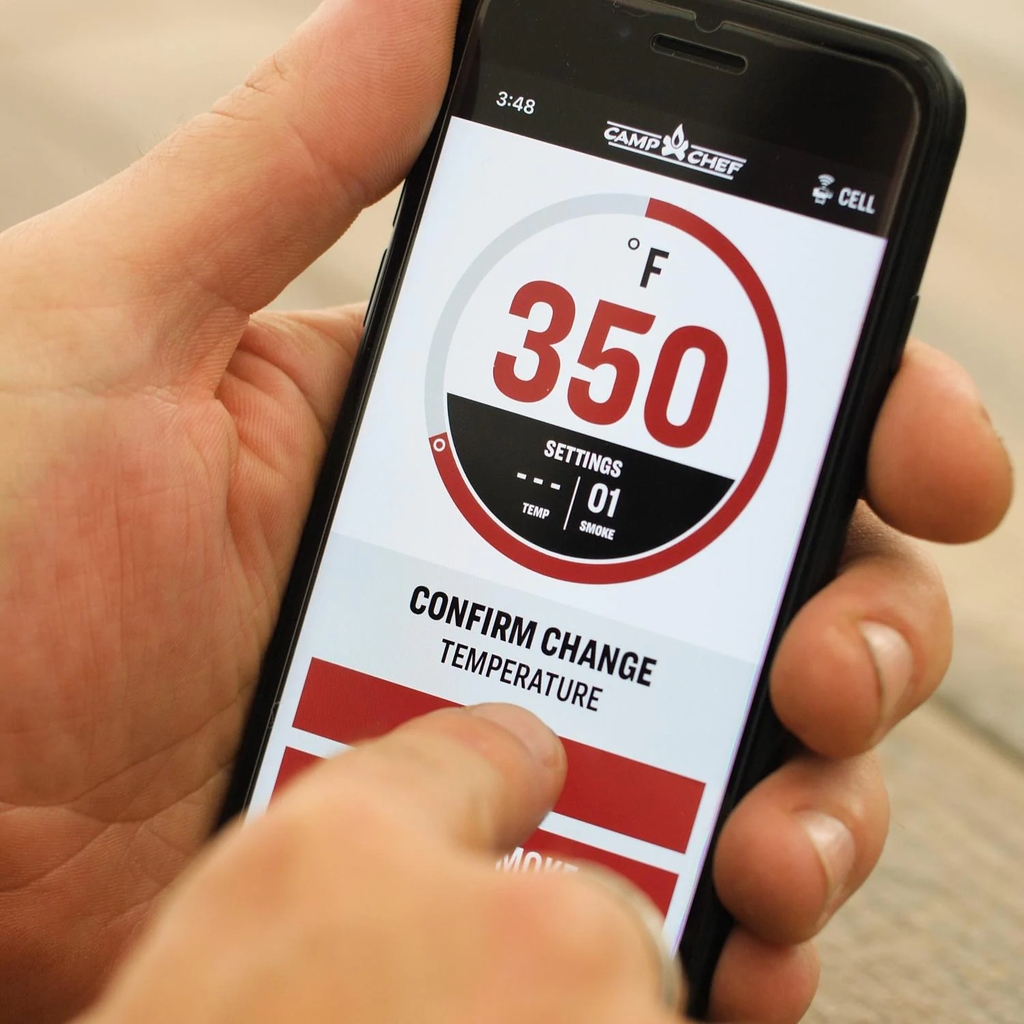 - Full-color PID controller with WiFi & Bluetooth connects to your mobile device via the Camp Chef Connect app