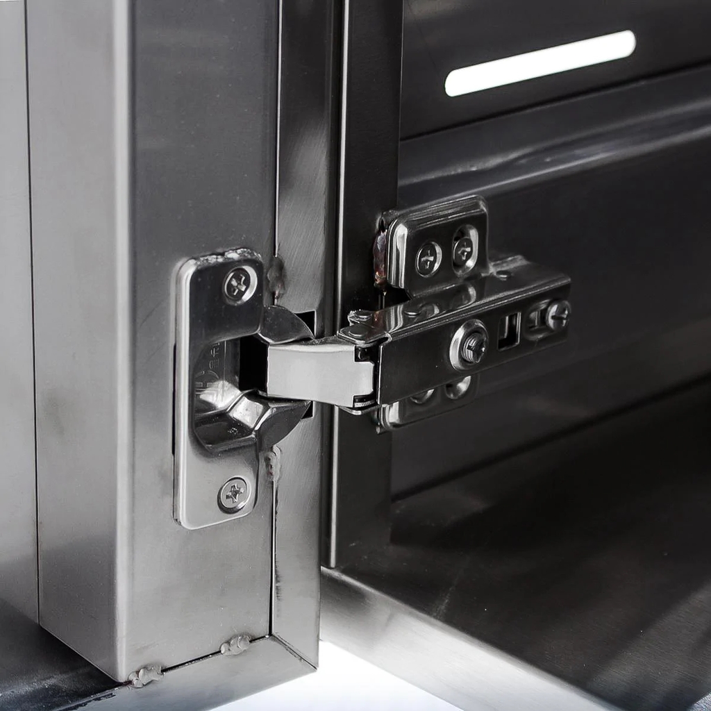 - Double doors on the grill provide storage for any tools or grilling accessories