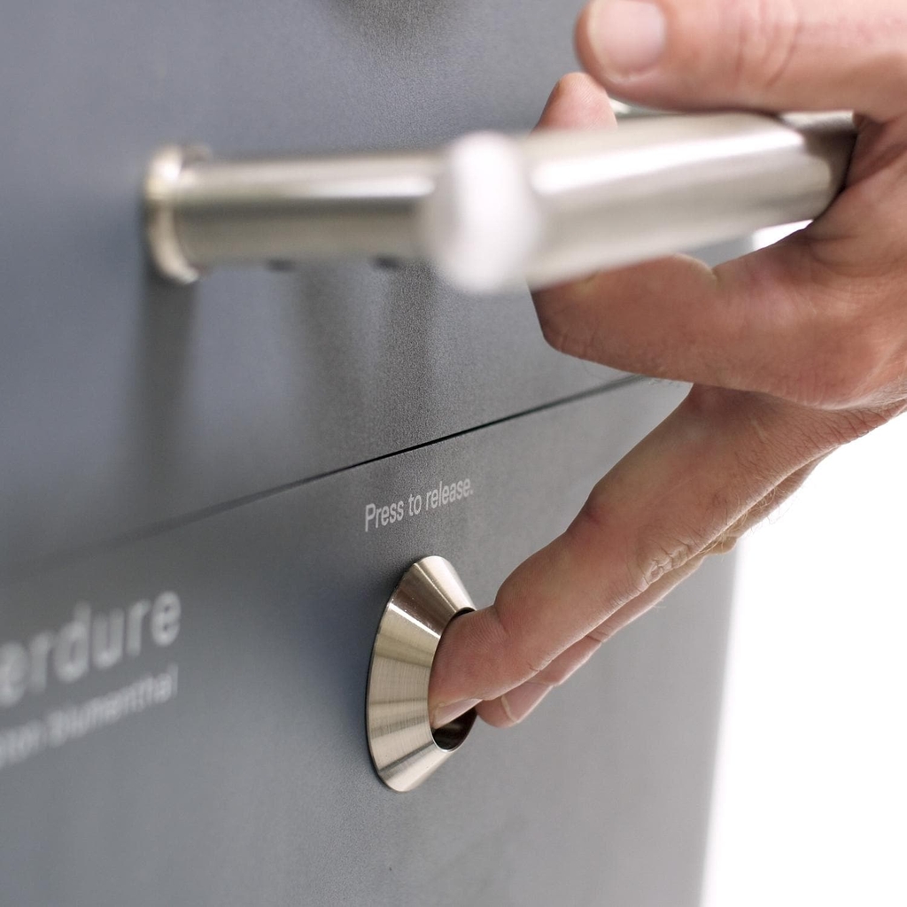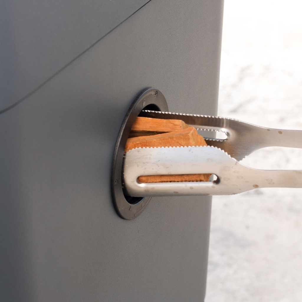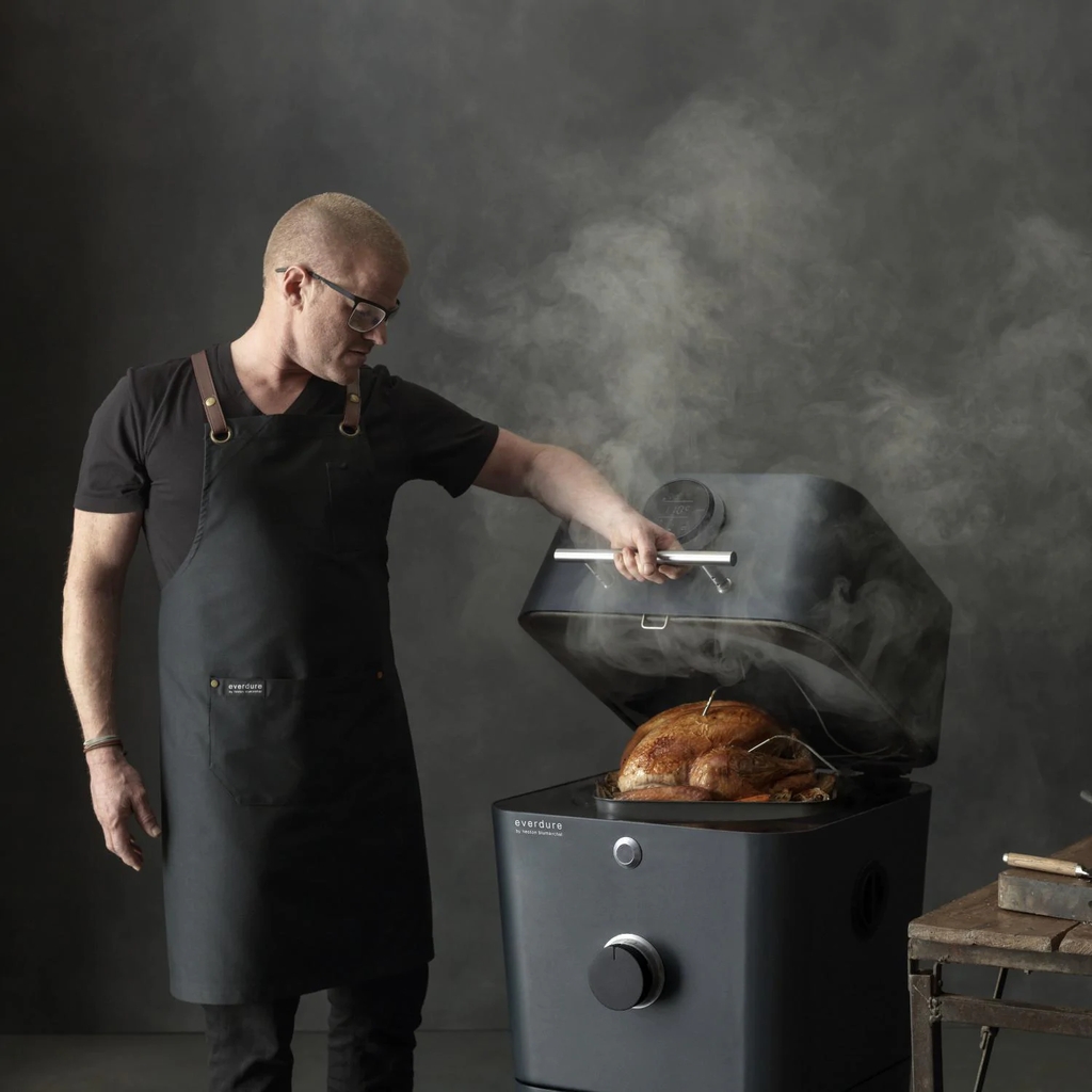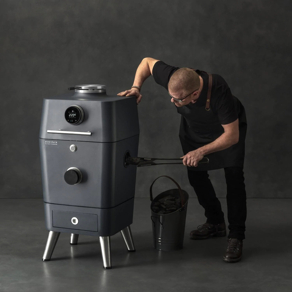 The Everdure By Heston Blumenthal 4K Charcoal Grill & Smoker in Graphite does everything you can do in your kitchen and more. The 4Ks unmatched airflow control system makes turning up the heat or slowing it down a one-of-a-kind experience. Both bottom and top vents are marked by numbers for a more responsive and balanced flow of air. Thanks to its double wall insulated construction, the 4K has a cool-to-touch exterior. This coupled with an auto-locking hood makes it safe to use around pets and children.