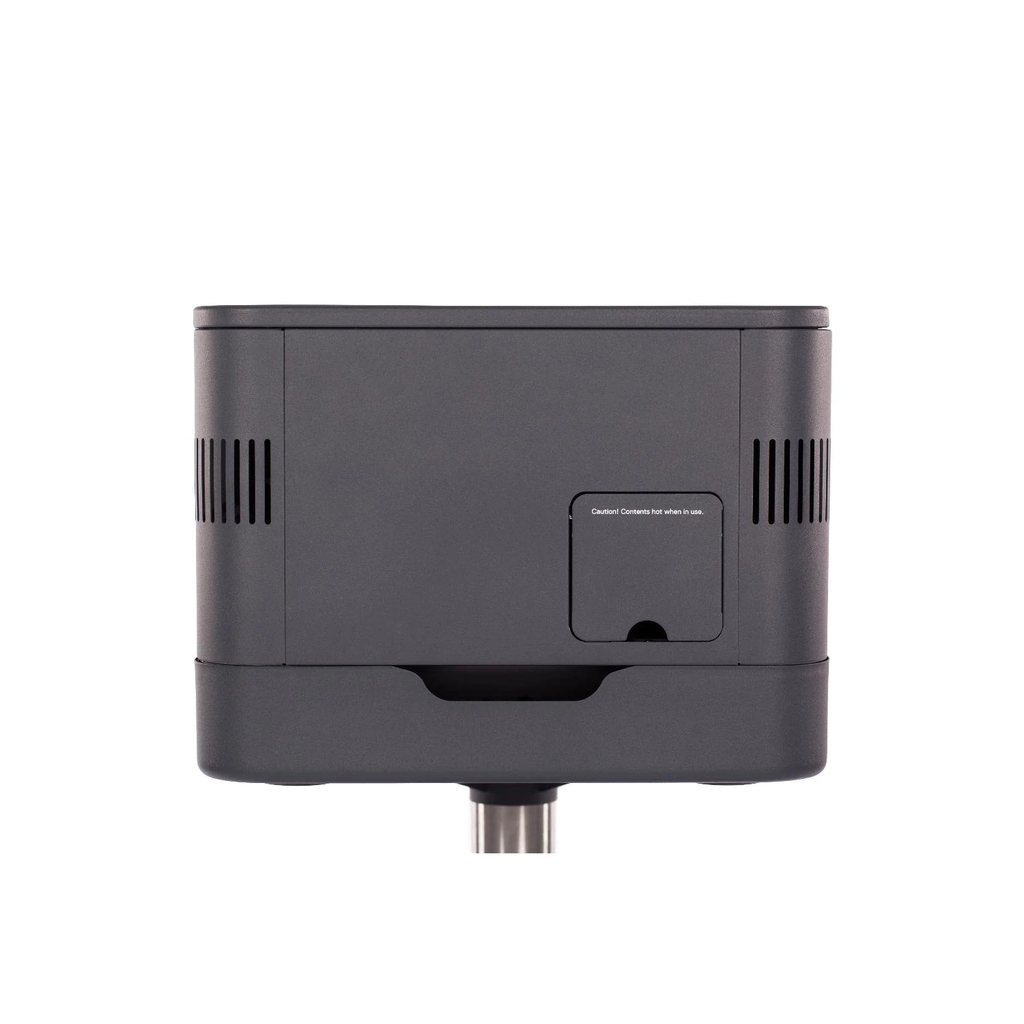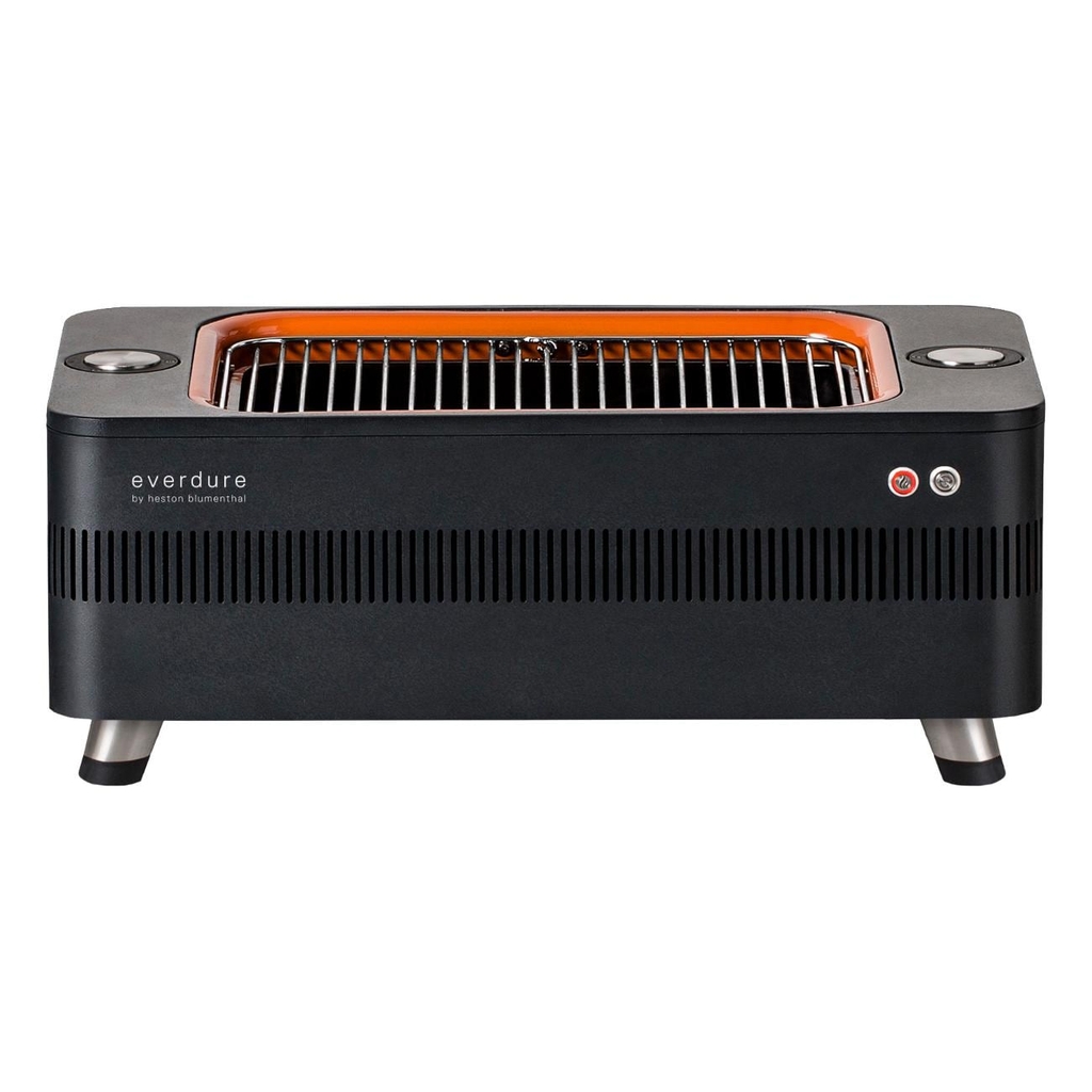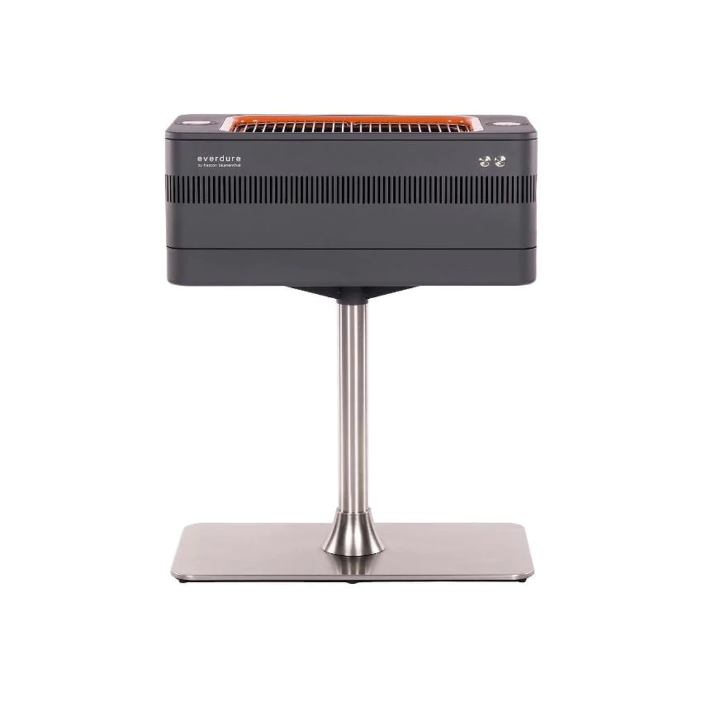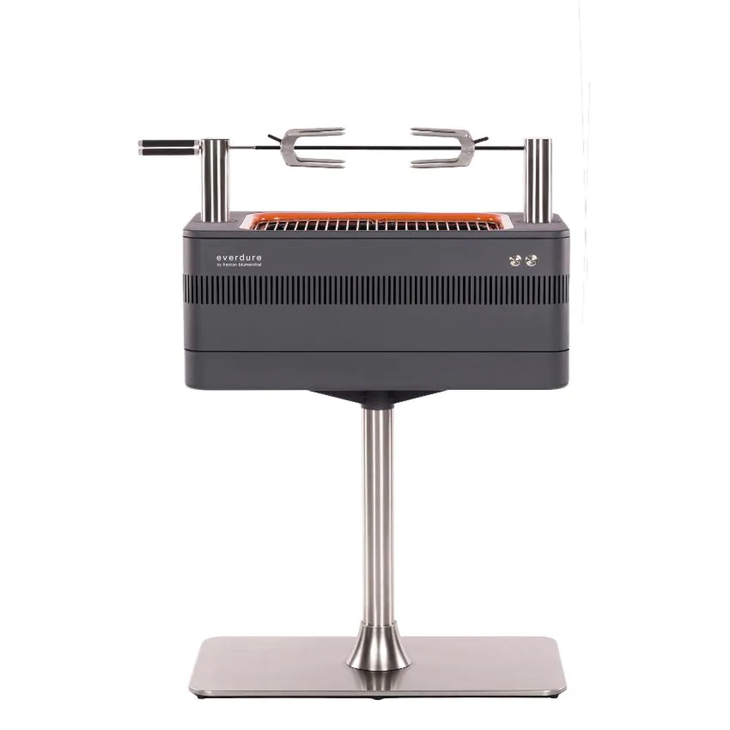 The Everdure FUSION charcoal grill by Heston Blumenthal is great for outdoor grilling anywhere you want to be. The FUSION series grills are made of powder-coated steel and have a Fast Flame Ignition System that, at the touch of a button, uses a heating element that ignites your charcoal and has you ready to start grilling in roughly 10 minutes. With the patent pending Rotiscope Technology rotisserie system, you get a built-in rotisserie that can be accessed by pressing and popping out the rotisserie support poles on the top of the grill and inserting the stowed rotisserie rod into them. The rotisserie includes ClipLock Forks that have a jaw-like design for keeping your food securely in place no matter if you are roasting a small chicken or a suckling pig. The rotisserie is capable of supporting up to 30 lbs and has 3 height settings. The built-in heat protection shield provides enhanced protection on any surface when grilling in almost any environments. Chrome hinged grill grates allow you to easily access the porcelain enamel firebox for adding or redistributing the charcoal and the porcelain enamel charcoal tray allows for easy charcoal removal. A 59-inch retractable power cord for long reach powering options and no clutter storing. The modern and pleasing appearance of the Everdure Grills is inspired by minimalist Danish designs. FUSION series grills come with an attachable and detachable pedestal for increased versatility when pursuing your ideal grilling experience.