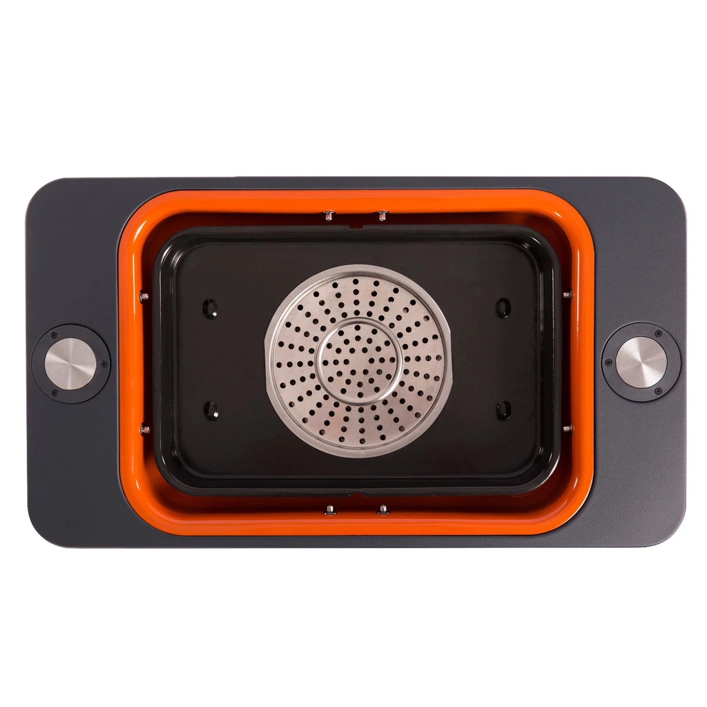 - The included rotisserie supports up to 30 lbs and stows easily in the side compartment
