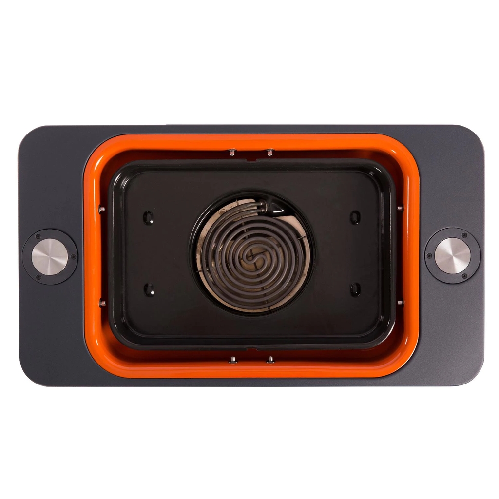 - Chrome hinged grill grate allows for easy reloading of charcoal