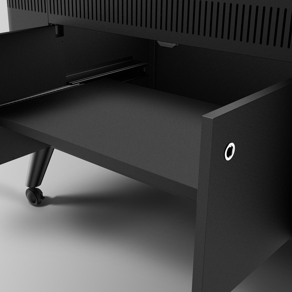 The built-in heat protection shield provides enhanced protection on any surface. Chrome hinged grill grates allow easy access to the porcelain enamel firebox. This allows you to easily add, remove, or redistribute charcoal as you see fit. A 59-inch retractable power cord is included for no clutter storage. Locking caster wheels allow you to keep your grill stable and secure. A large area under the grill can be accessed via the two double-lined doors. This provides you with extra storage options. The modern appearance of the Everdure Grills is inspired by minimalist Danish designs. The HUB II grill stands on four legs, two with rolling casters, giving you enhanced mobility when pursuing your ideal grilling experience.
