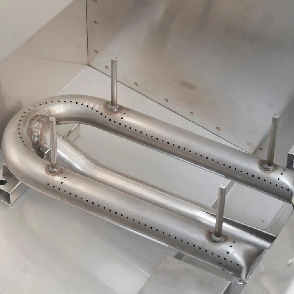 - Cooking grids, warming rack, and control knobs are locked to the grill to prevent theft