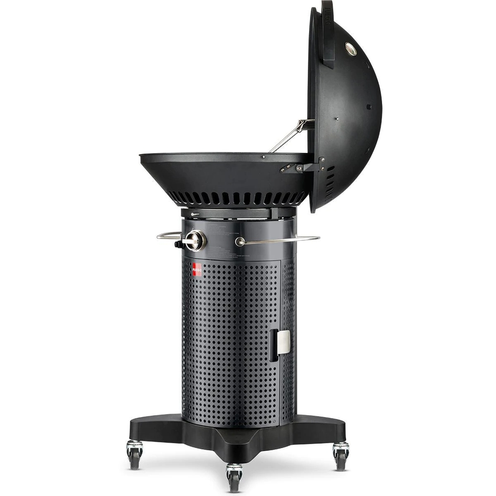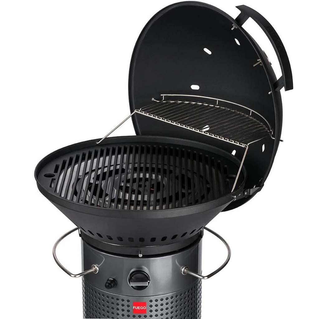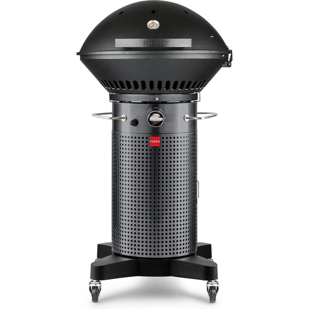 Built on the award-winning Fuego Element design, the Fuego Professional adds even more user-friendly features. With its small footprint, it still provides an ideal grilling solution for small spaces and tailgating. The Fuego Pro offers 415 square-inches of primary cooking space as well as a 110 square-inch, stainless steel warming rack. The combined grilling area is 525 square-inches along with 9-inches of vertical grilling height with the lid closed. This grill has enough room to cook 20 burgers or even several beer can chickens at once! A new 26,500 BTU stainless steel, dual-zone burner system ignites at the push of a button, reaching 500 degrees Fahrenheit in just 5 minutes. A heavy-duty, 15-pound porcelain-enameled cast iron cooking grate ensures even heat distribution. With no hot spots, you can get great sear marks from anywhere on the grill! From grilling to slow cooking, use the single dial control knob to fully control the burner rings. The dual burners offer three unique ways to cook. Simply turn on the independent 18,000 BTU outer burner ring to barbecue. Slow roast with the heat reflection shields integrated into the lid and residue tray for convection-like cooking. Or use both burners at once for direct heat to sear steaks and seafood. Average temperature ranges for this grill are between 250-700 degrees and are monitored by a built-in thermometer. The Fuego Professional features a new 45-degree hinged lid design. This allows you to safely open the grill without reaching across the cooking surface. Cleanup is easier than ever with a new open fire-bowl design, allowing debris to fall straight into the removable residue tray. Easily roll the grill to your desired location with the locking, non-marking industrial casters. Unit ships as propane ready with orifices for natural gas conversion included. Conversion must be done by a licensed professional.