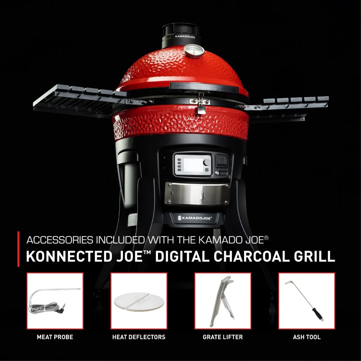 Experience a new era of ceramic grilling with the Kamado Joe Konnected Joe Wifi Charcoal Grill and Smoker. Crafted with Kamado Joe innovation, this grill combines traditional kamado style with digital technology for a revolutionary cooking experience. The Konnected Joe makes lighting a fire easy. Simply press the Automatic Firestarter (AFS) button to ignite your charcoal, set your desired cooking temperature with the digital Kontrol Board or the Kamado Joe App and let the Kontrol Fan do the rest. With multiple cooking functions the Konnected Joe allows you to enjoy Kamado grilling and smoking your way. Automatic cook mode provides full digital control, or try Classic mode, for the traditional Kamado experience. Serve up adventure for every meal with the Konnected Joe by Kamado Joe.