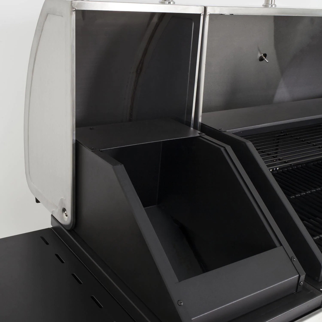 The Louisiana Grills LG800 Deluxe is just that – a bigger and better wood pellet grill to exceed your BBQ expectations. Featuring large cabinets, dual side shelves, double-lined stainless steel lid, a programmable meat probe, and an easy to use digital control center, anyone can be the king of the grill. Reach precise temperatures up to 600 degrees using pure hardwood pellets, fed by the motorized auger from the 21 lb capacity pellet hopper. Two levels of porcelain-coated cast iron cooking grids offer 838 sq. inches of direct or indirect grilling space over the sliding flame broiler plate. Leave it shut for classic pellet grilling or slide it open for direct access to the flame. The proprietary exhaust system allows smoke to flow fully around your food and out, cooking and smoking it evenly using convection. On the front of the grill is a stainless steel tray, perfect for holding sauces or other items. The grease bucket is hidden inside the cabinet, closed up behind swinging stainless steel doors. For having a drink while holding down the grill, a bottle opener can be found on the front-left side. Four heavy duty locking caster wheels keep the grill stable, or let you roll it over to your next cookout. Like all Louisiana Grills, the 8-in-1 cooking system lets you braise, smoke, sear, bake, grill, roast, chargrill, and BBQ. Become the master of your backyard with the stylish, easy to use LG800 Deluxe grill and smoker.