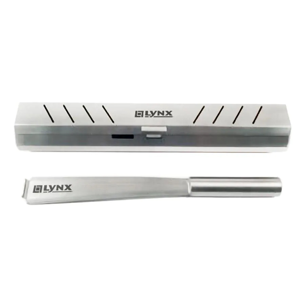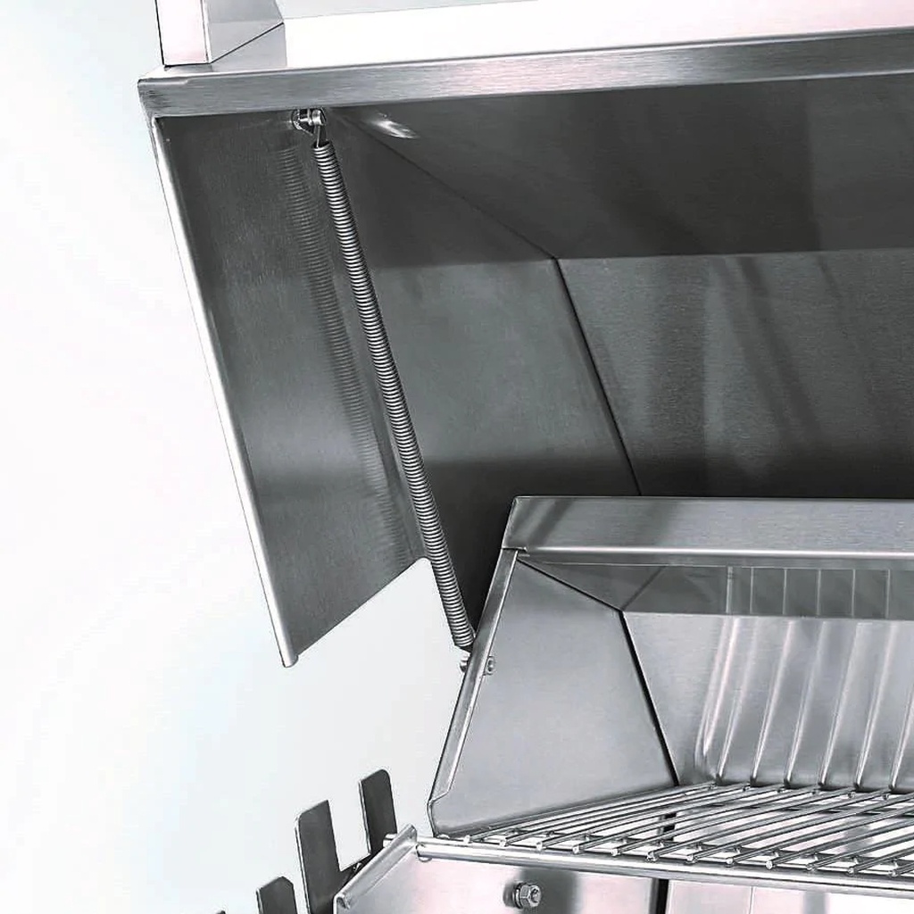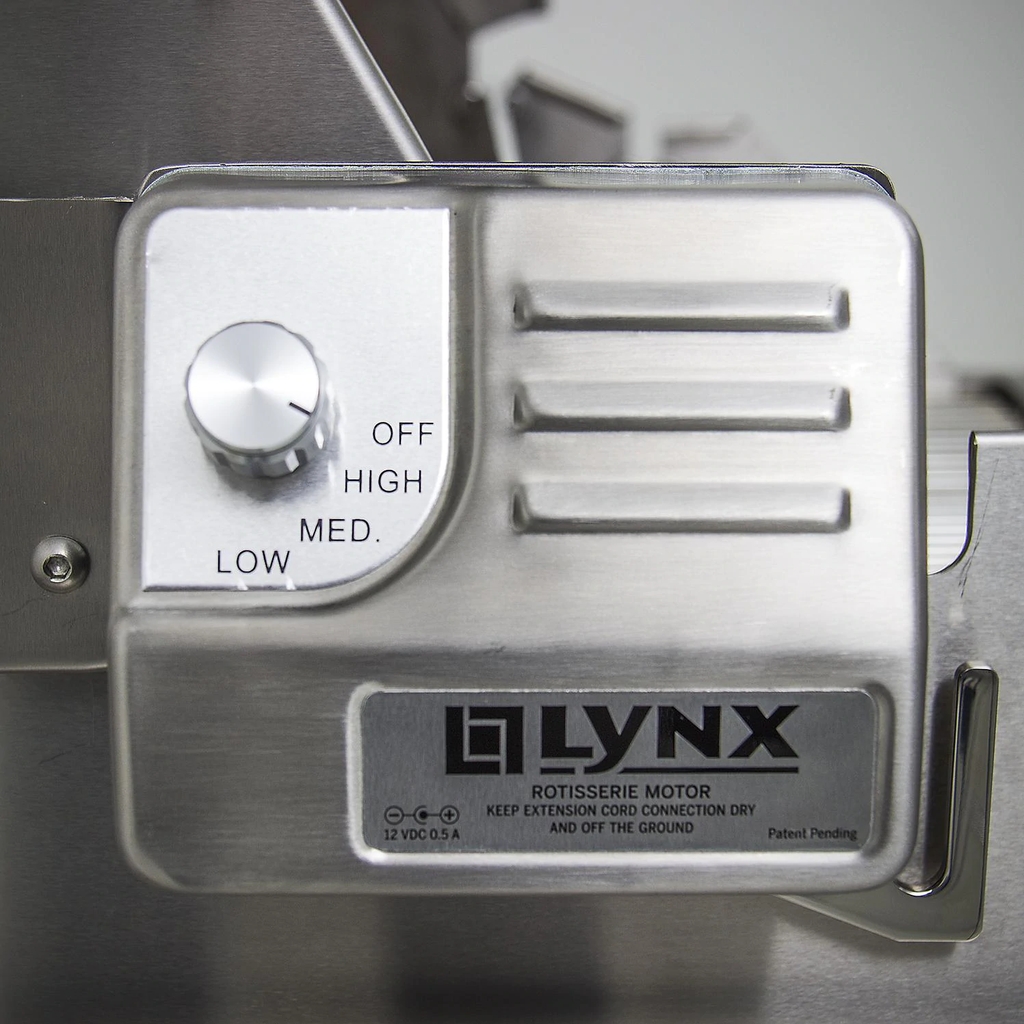 Superior craftsmanship and innovative features create the ultimate outdoor grilling machine in this 36-inch propane gas all infrared grill from Lynx. The quality begins outside with gleaming, high-grade 304 stainless steel that is seamlessly welded to eliminate areas where grease and moisture can collect. A patented design deflects wind and allows the grill to vent properly, stabilizing critical surface temperatures when cooking in windy conditions. Inside, three 23,000 BTU Lynx Trident adjustable infrared burners allow you to sear thick-cuts perfectly, or throttle back to cook more delicate items and an advanced ignition system uses a hot element positioned directly above the burner port for reliably safe start-up. The three burners push 69,000 BTUs of total cooking power on the grilling surface. A comprehensive 935 square-inches of overall grilling area combines a 640 square-Inch main cooking grid with 295 square-inches of secondary area to create a highly versatile cooking platform. The Lynx L36ATRF-LP also has a dual-position internal rotisserie with heavy-duty, 3-speed motor and rear infrared burner to raise your cooking options to their full potential. Lynx made sure you have easy access to all these fine cooking features by adding lift assist and a handle that rotates fluidly as you raise and lower the hood. Like to grill into the night? The adjustment knobs on the control panel sport blue LED accent lights for precise control and ultra-bright internal halogen lights illuminate the grilling surface eliminating guess-work. This Lynx grill on cart serves as a complete mobile outdoor kitchen with two heavy duty swing-out cart doors, magnetic latches and condiment shelves that are removable for easy cleaning. Commercial-grade casters make the unit easy to move and shelves can be folded down out of the way. Proudly made in the USA. Bring the power and performance of Lynx innovation to your outdoor cooking with the L36ATRF-LP Propane Gas Grill on Cart.