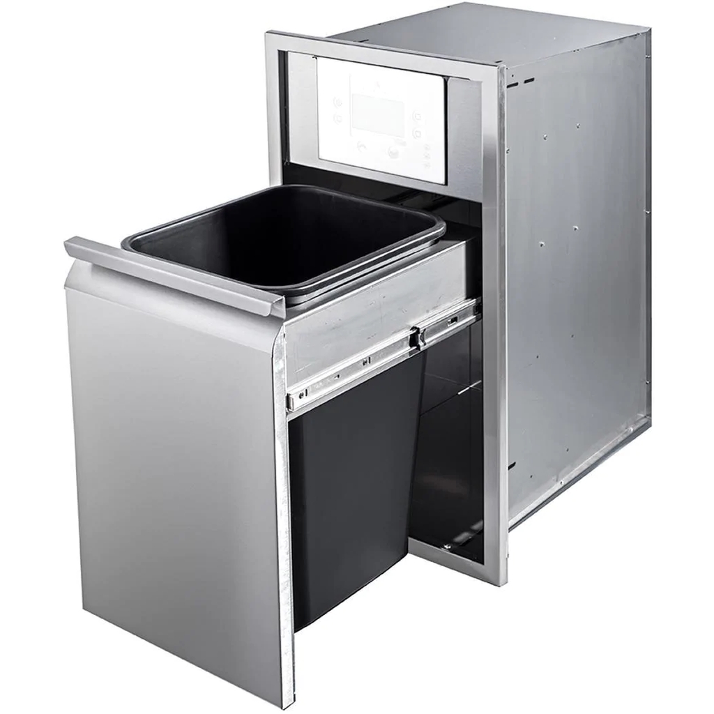 - Package Includes: 39-Inch pellet grill and grill cover, 15-Inch roll-out trash bin, and a 42-Inch double access door