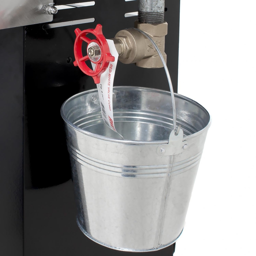 - Galvanized bucket and solid brass valve provide easy draining and disposal of the drip pan fluids