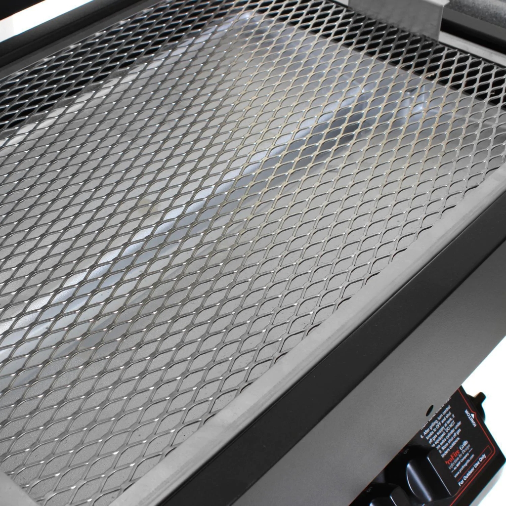 - Heavy-duty cast aluminum drip pan prevents flare-ups, diffusing heat evenly across the cooking surface