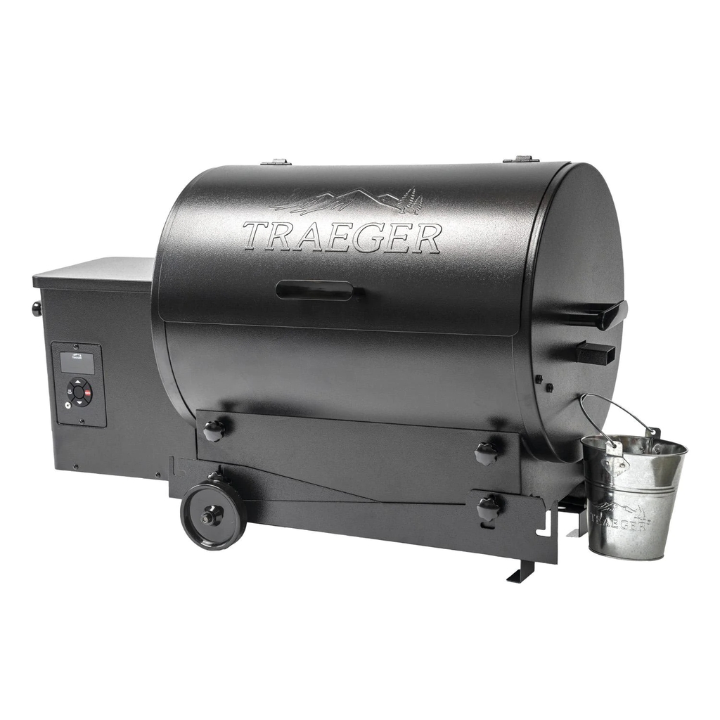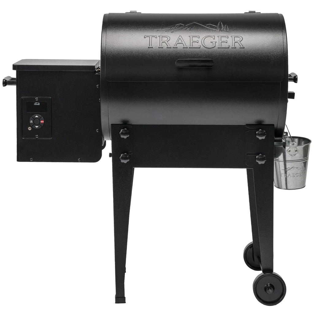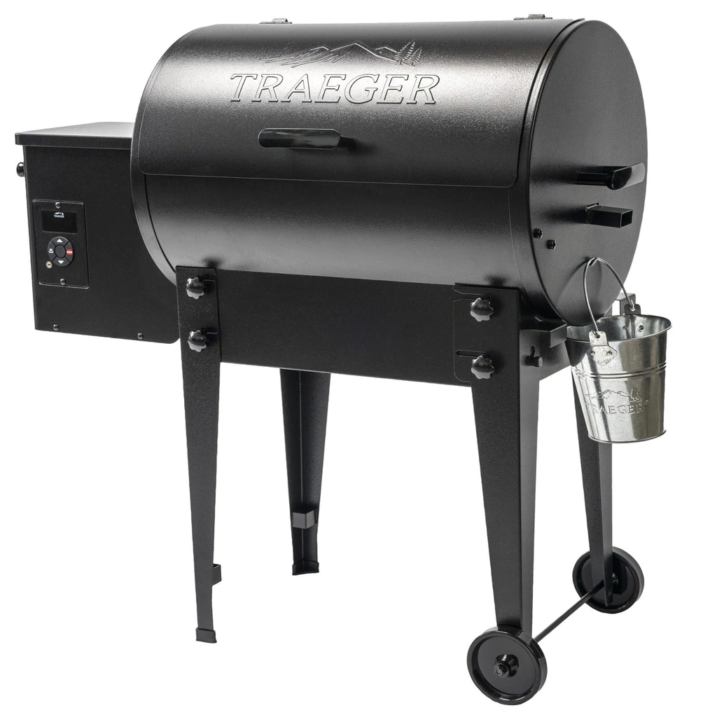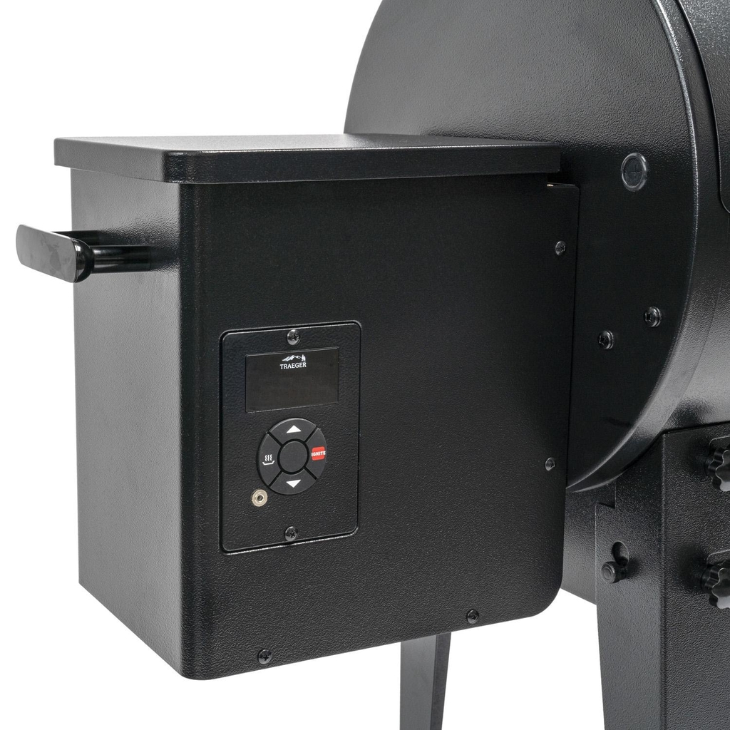 The Tailgater by Traeger offers the convenience and rich flavor of a wood burning pellet grill in a more compact size. With a smaller footprint and legs that fold flat, the Tailgater black 20-inch pellet grill is perfect for apartment balconies, tailgating, or anywhere else you want to bring the wood-fired flavor. This grill is constructed of a powder coated steel, and boasts 19,500 BTUs of cooking power. The 300 square inches of porcelain coated grilling surface produces excellent sear marks, while being easy to clean. Features EZ-Fold legs that offer maximum portability, letting you quickly place the grill in the bed of your truck, the back of your SUV, or the trunk of your car and be on your way. The versatility of this pellet grill allows you to smoke at temperatures as low as 180 degrees and then crank it up to 450 degrees to sear to perfection. The Digital Arc Controller displays the temperature inside the grill on the bright orange LED panel and is monitored by a resistance temperature detector probe which keeps the preset temperature in 5-degree increments. Keep Warm Mode maintains the hot temperature of the food for when it comes off the grill. Traeger grills feature an auto-start system that is simple and safe to use. The natural airflow inside of the grill allows for convection cooking, so you can bake a pizza right on your grill or slow smoke a large brisket. Turning and flipping different kinds of meat will be necessary at high temperatures. When you turn on the grill, the auger begins to feed pellets into the firepot while the draft induction fan feeds air into it. The igniter rod is activated and glows red hot for the first four minutes to ignite the pellets in the firepot. These cost-effective pellets burn at a rate of only 2 lbs per hour on high heat, 1 lb per hour on medium heat, and only 1/2 lb per hour when smoking.