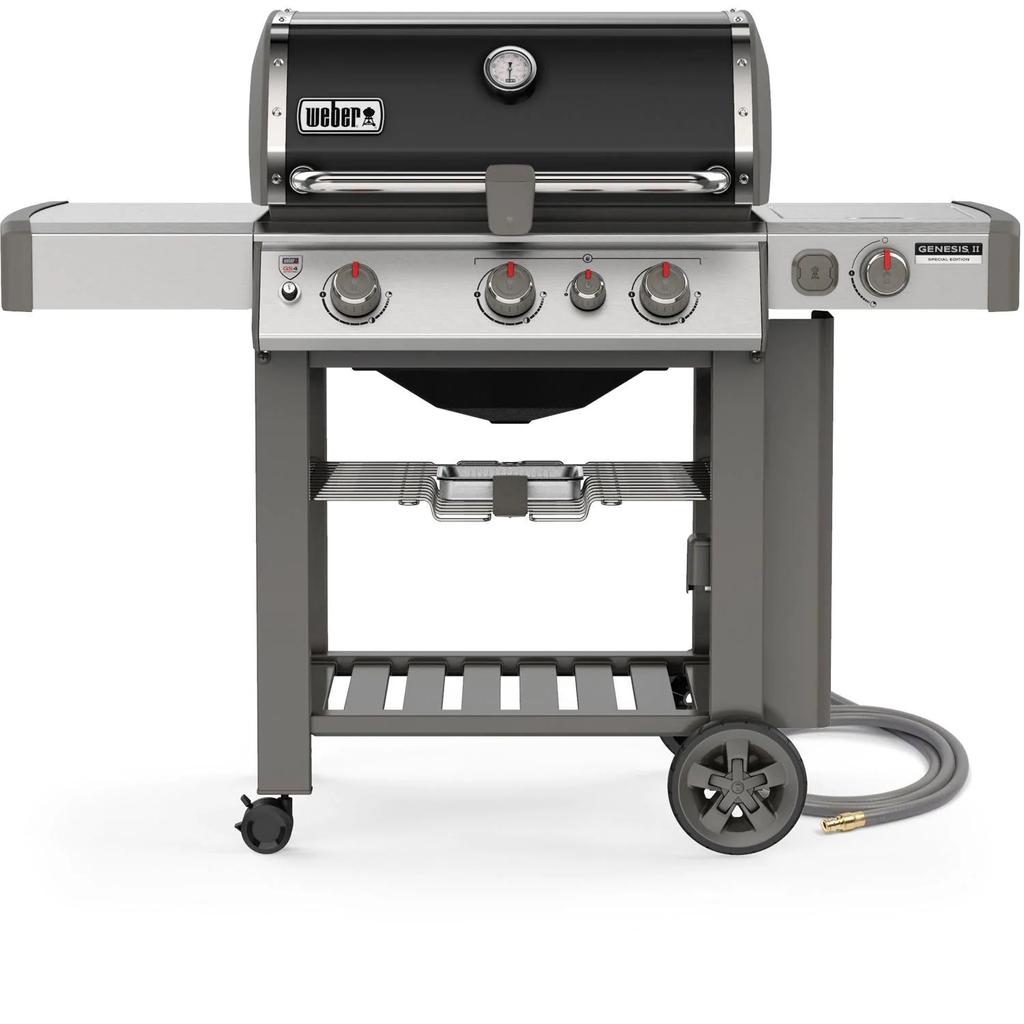 - Genesis II Special Edition grill featuring a black porcelain-enameled finish, 9mm stainless steel rod cooking grates & motion-activated handle light