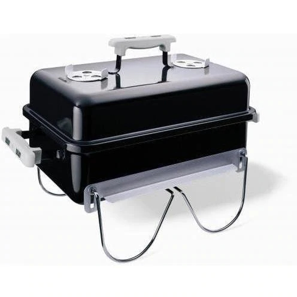 Big fun comes in small sizes! With a compact, space-saving design, the Weber Charcoal Go-Anywhere Portable BBQ Grill is in a class of its own. The take-along size makes it perfect for tailgating, camping or grilling in tight spaces like apartment balconies. Made of premium-grade steel, the lid and base of this portable Weber grill are coated with a black porcelain enamel inside and out that is baked on, fusing the finish to the steel to prevent rusting and peeling through years of use. Two adjustable top vents provide the proper airflow needed for perfect grilling and help you to control the temperature across the 160 square inches of cooking area. The Go-Anywhere Grill features heavy-duty plated steel legs that pivot to lock the lid in place for carrying, plated steel cooking grates and three glass-reinforced nylon handles that will withstand the elements for the life of the grill. Grab it and grill anywhere!