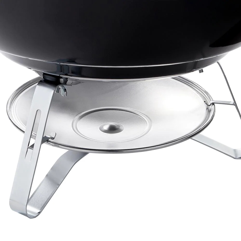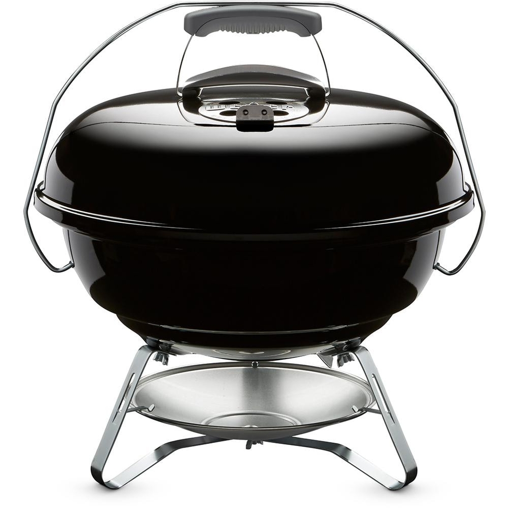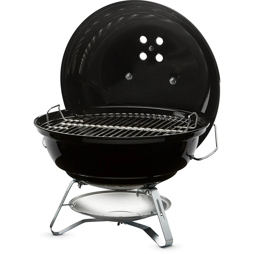 Big fun now comes in more sizes! Introducing the newest member of the Weber portable grill lineup, the Jumbo Joe charcoal grill. Now a less-miniature but still very portable take on the classic Weber kettle, the Jumbo Joe charcoal BBQ grill lets you grill in style on the go, without sacrificing size! Perfect for picnics, camping or tailgating, the Jumbo Joe is made of premium-grade U. S. Steel. The bowl and lid of this portable Weber kettle grill are coated with a black porcelain enamel inside and out that is baked on, fusing the finish to the steel to prevent rusting and peeling through years of use. The adjustable, no-rust aluminum air vents provide proper airflow control for perfect grilling, helping you to control the temperature across the generous 17 1/2-inch diameter cooking area. The Jumbo Joe Tuck-N-Carry lid lock secures the lid in place for carrying and lowers to double as a lid holder while you grill. Weber Jumbo Joe grills also feature heavy-duty, plated steel cooking grates and a lid handle with heat shield for a comfortable, cool grip.