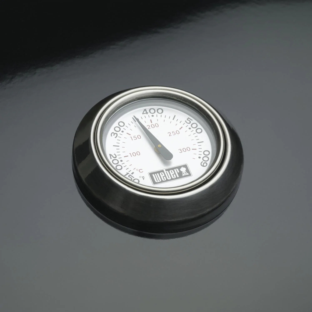 - Conveniently features a built-in thermometer, Char-Basket charcoal holders and tool hooks