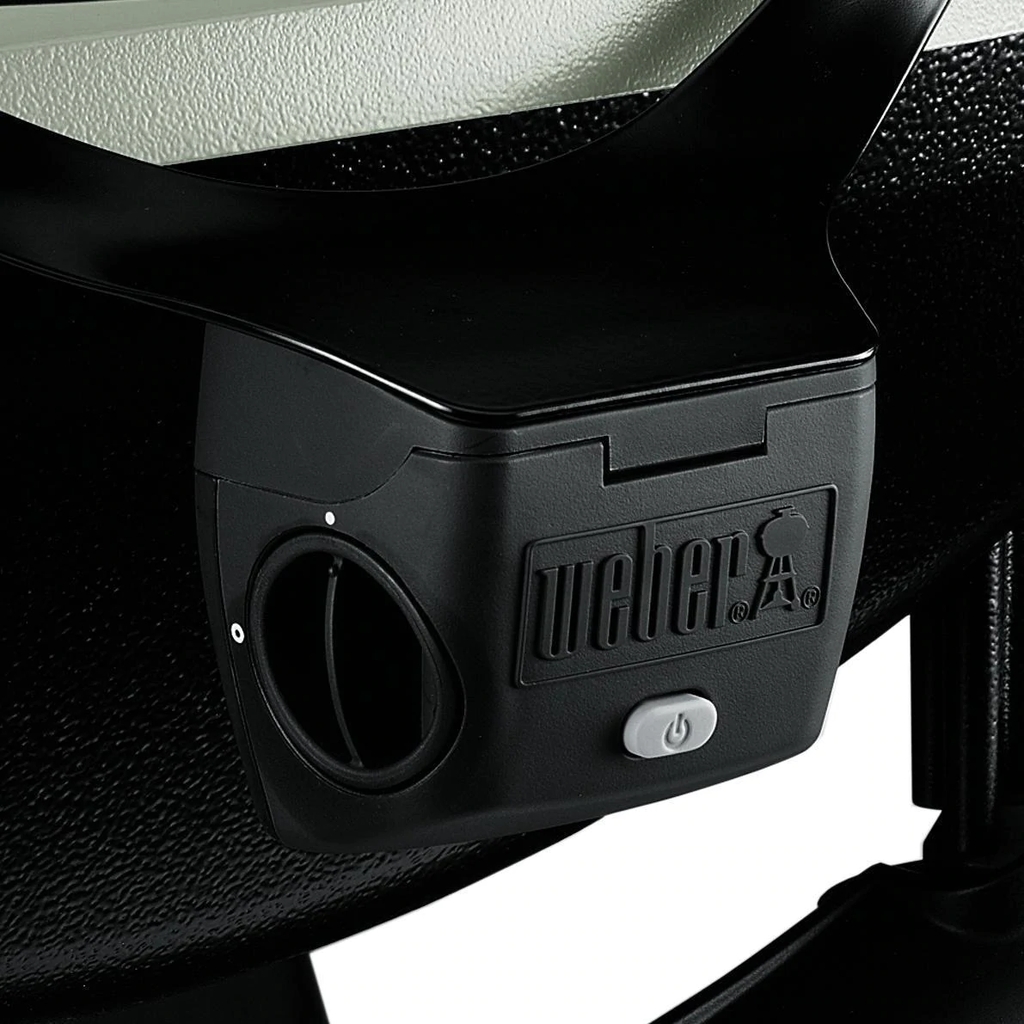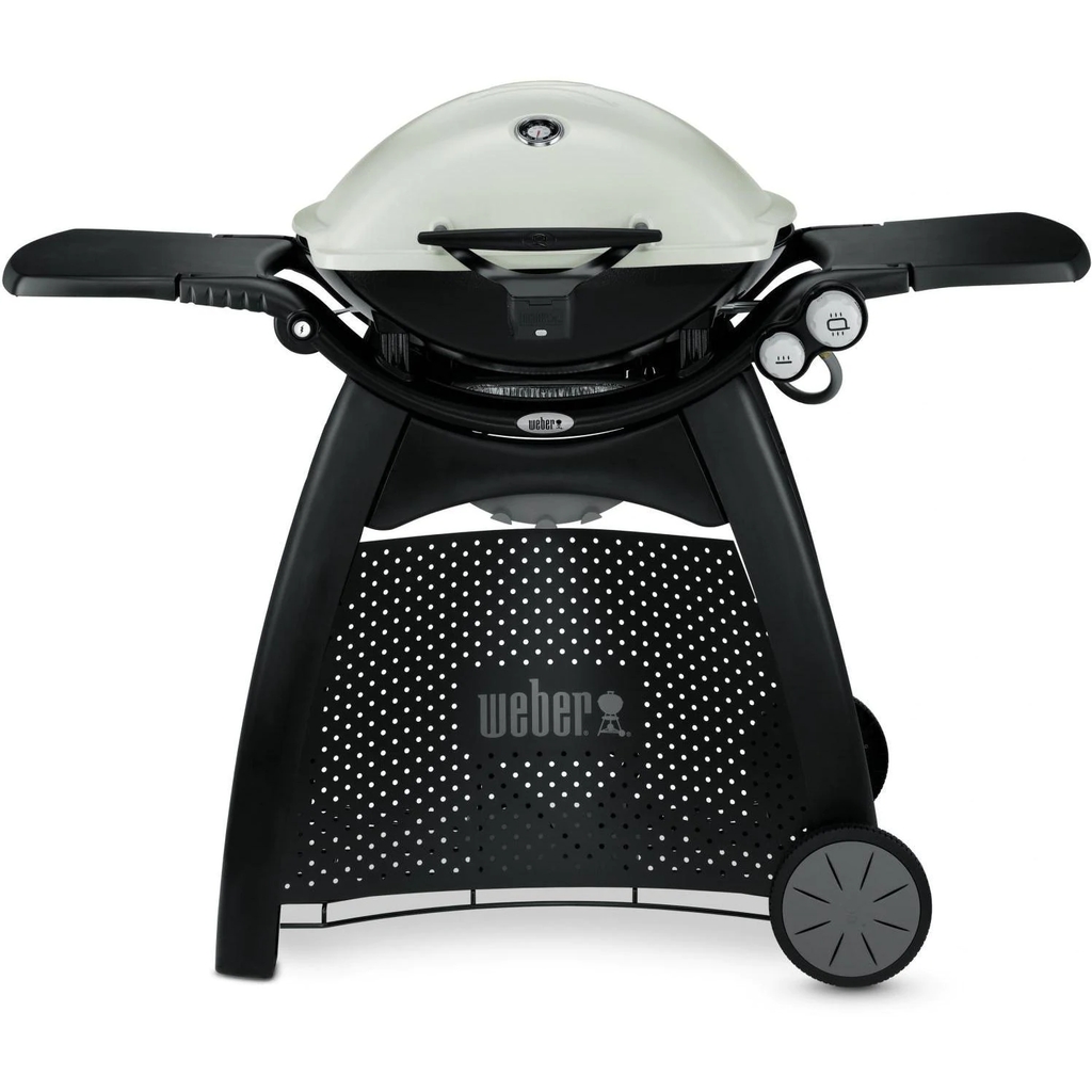 Stand up and stand out with a Weber Q 3200 BBQ grill! Compact Weber Q gas grills are perfect for tailgating or small spaces like apartment balconies. This larger version of the popular Weber Q gas grill offers 462 square inches of total cooking space, including 69 square inches on a warming rack. With the push of a button, the grill lights the two durable stainless steel burners to produce an amazing 21,700 BTUs. The infinite control burner valves allow you to set the precise temperature you need with the easy-to-use knobs. This Weber propane gas grill has a tall cast aluminum lid for larger items and has a built-in thermometer to monitor the cooking temperatures. The sturdy cart features two removable folding work tables, each with convenient tool hooks, so you have space to spread out and work and comes with a grill out handle light so you can grill at night. The Weber Q 3200 also features a two large capacity porcelain-enameled cast iron cooking grates, a cast aluminum body with drip ducts and a sturdy glass-reinforced nylon frame and handle. This Weber Q includes a removable grease catch pan for easy cleaning and a hose and regulator for a refillable 20 lb propane tank (tank sold separately). The Weber Q recipe booklet is also included.
