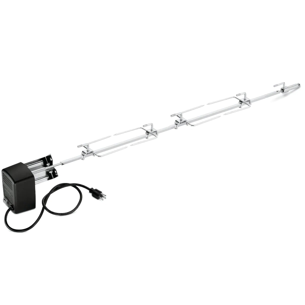 - Tuck away rotisserie system with rear infrared burner makes roasting food simple